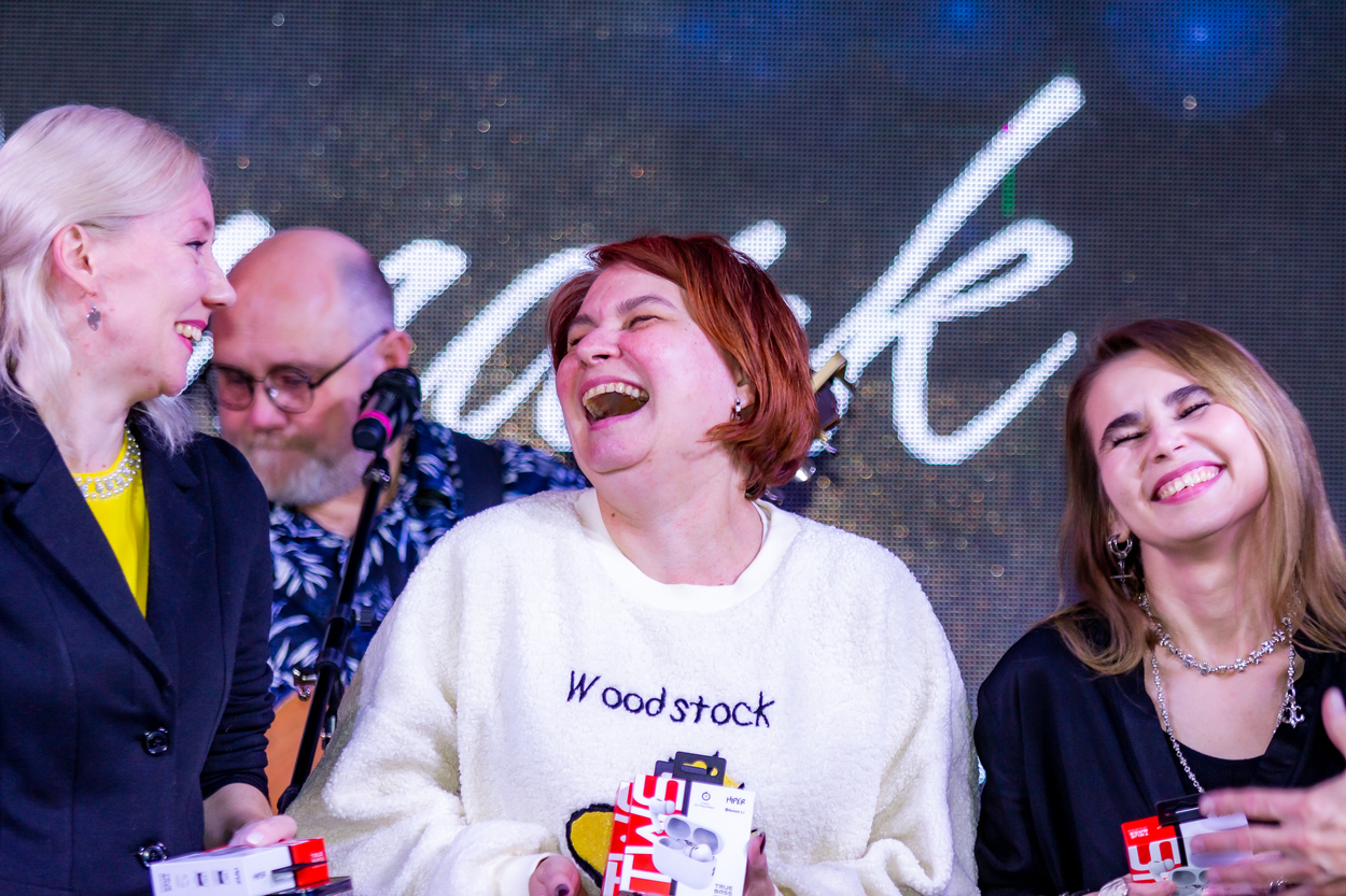 В этот раз была песенная вечеринка - «Караоке 2.0». Мы пели песни, играли в квиз и музыкальное лото, танцевали (о, как все отжигали!) и соревновались в караоке-баттле. Победителями стала блистательная команда «Восьмая нота» - из компании «TeamSoft». Наградили их призами в тему вечеринки – беспроводными наушниками.