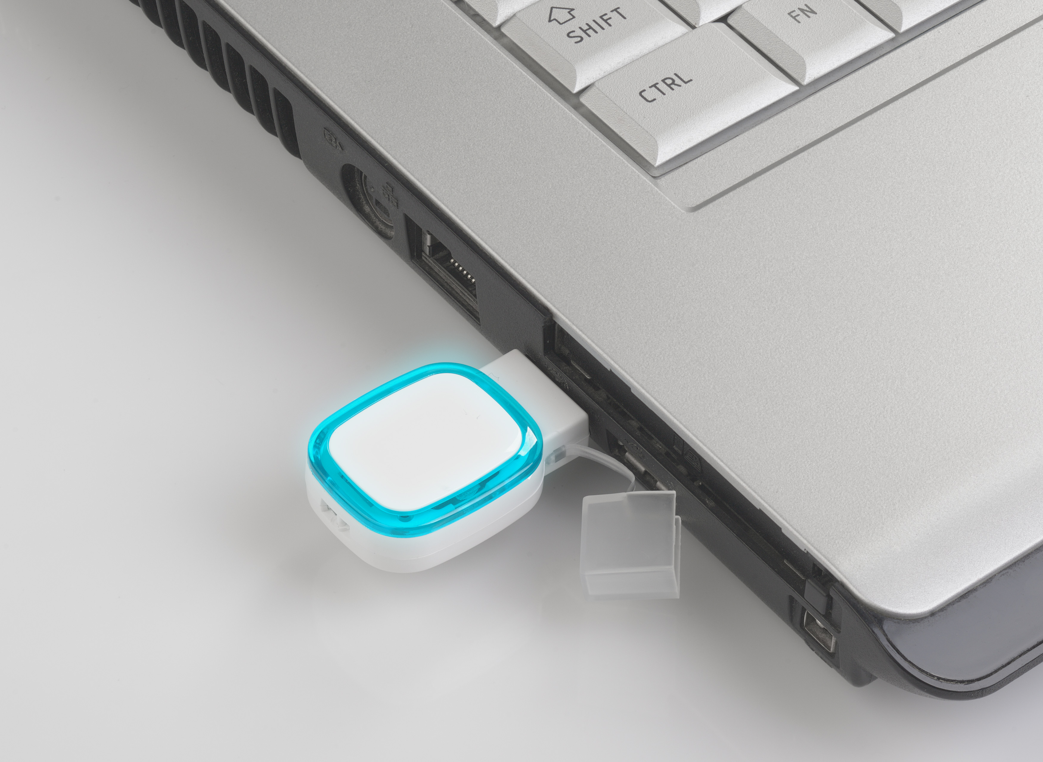 Флеш-карта 16 Гб с подсветкой логотипа, белый с бирюзовым
