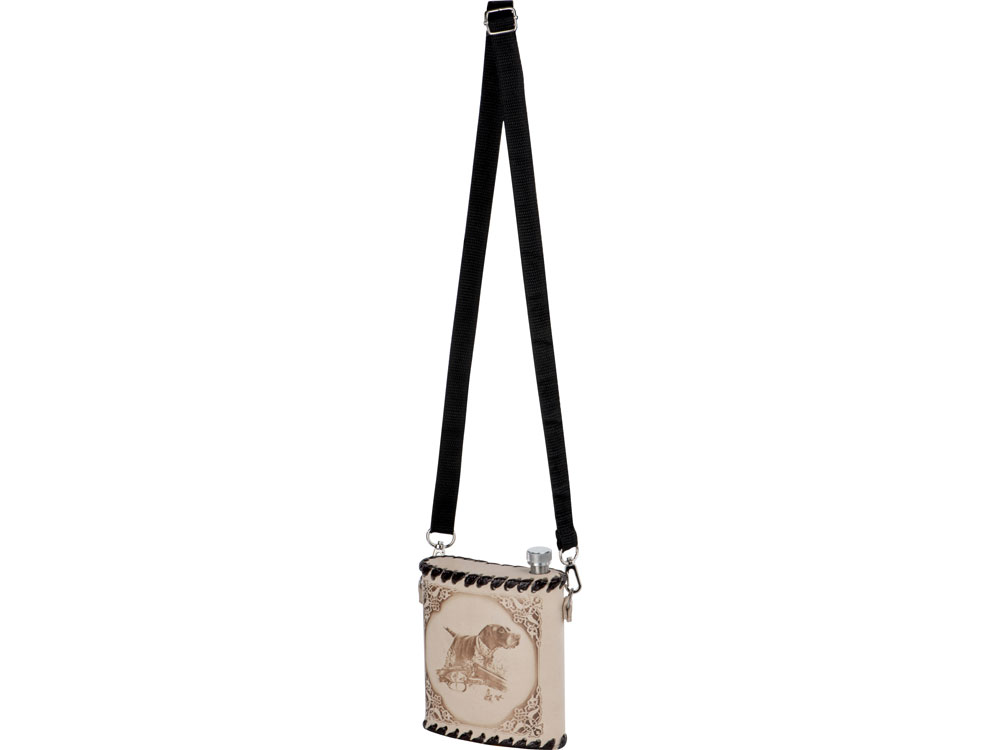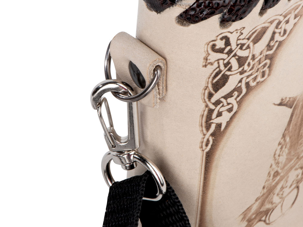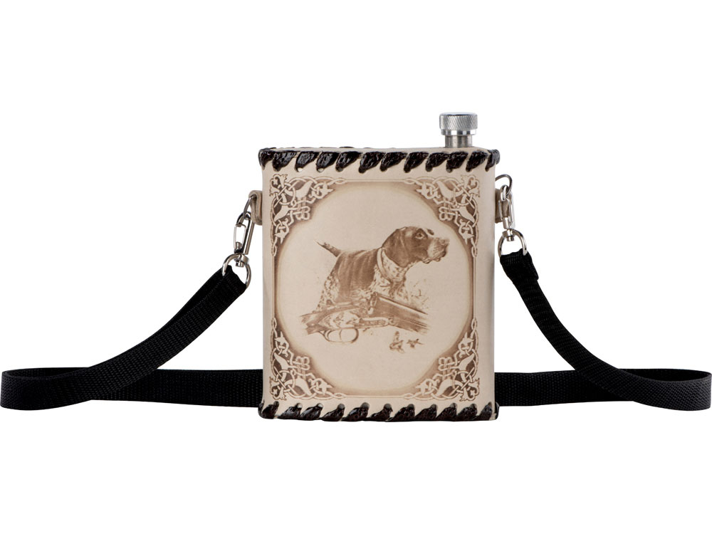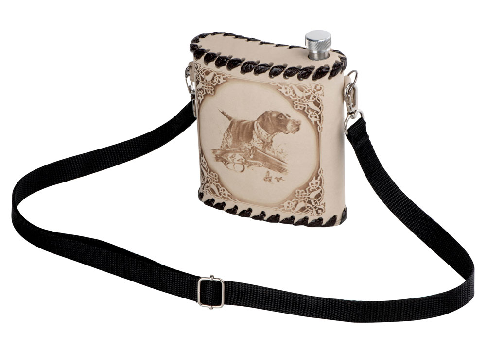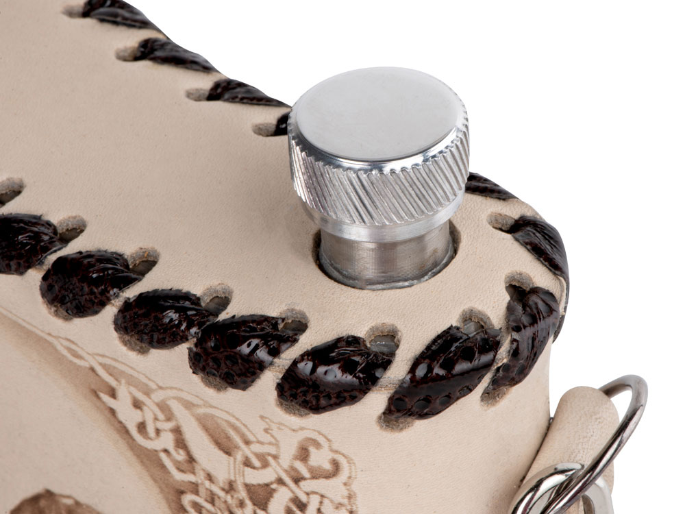 Фляга 0,5л в оплетке из натуральной кожи с нанесением рисунка методом художественного выжигания.