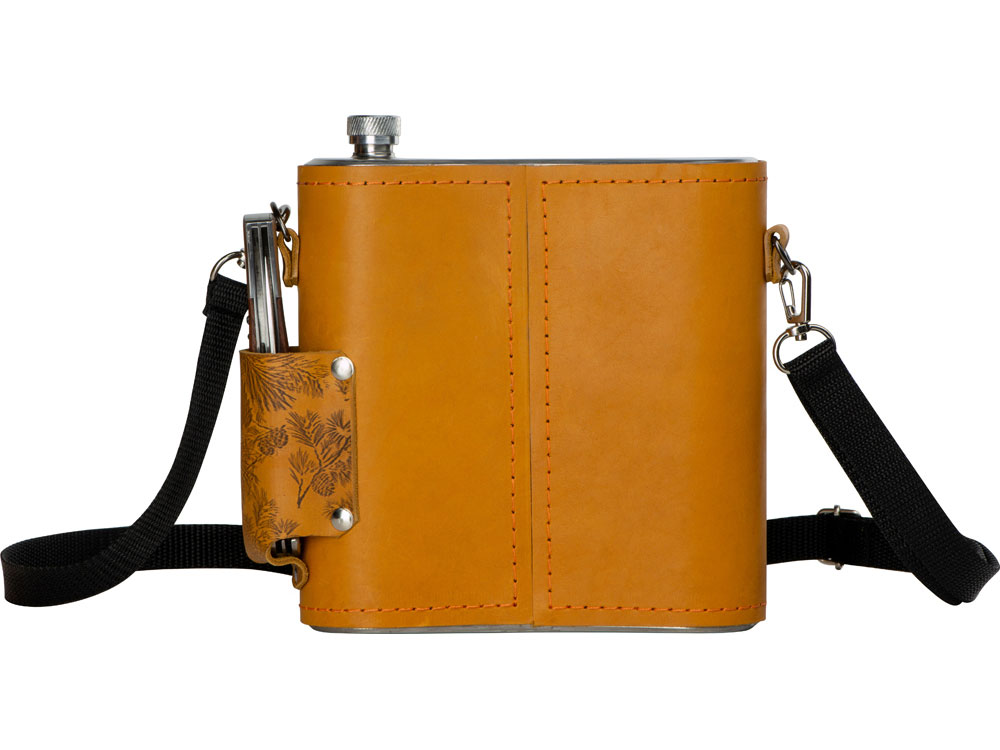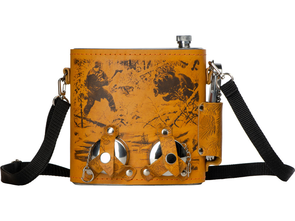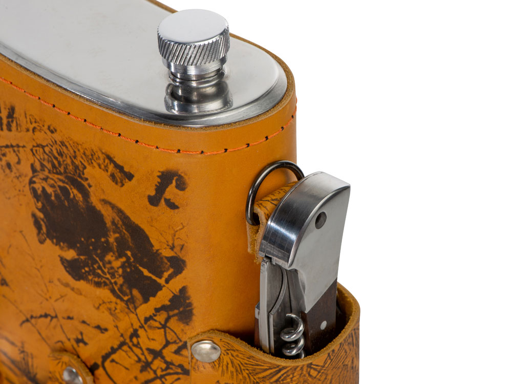 Набор Подарочный: фляга 510/2(рыжая кожа), 1,5 л+ 2 стаканчика+нож