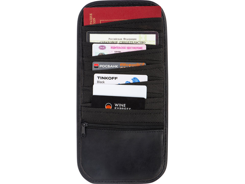 Универсальный органайзер на козырек автомобиля. Крепится на эластичные крепления. Имеет 12 карманов и отделение на молнии для расположения банковских карт, документов и других мелочей. Органайзер легкий по весу, не мешает обзору водителя.