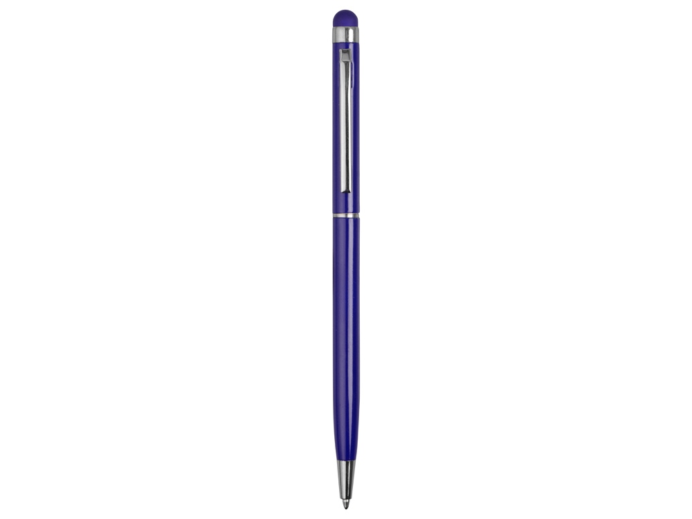 Тонкая металлическая шариковая ручка с поворотным механизмом и стилусом. Функциональный и стильный аксессуар станет отличным подарком.