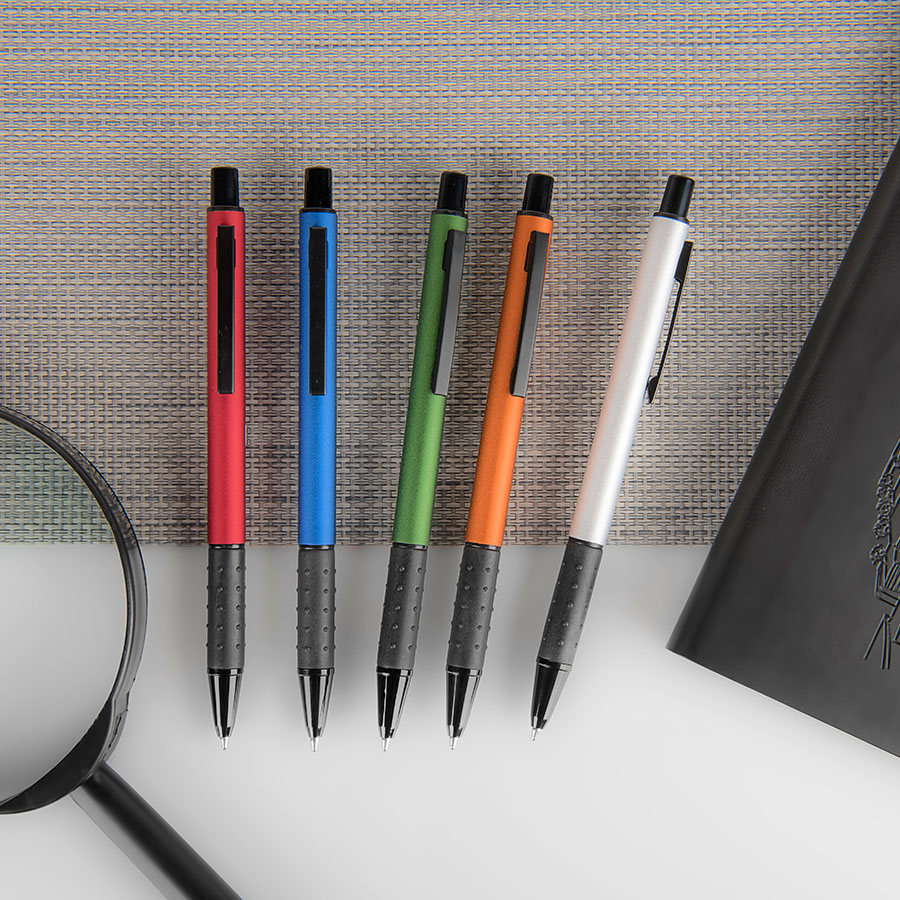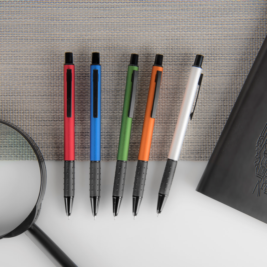 CACTUS, ручка шариковая, красный/черный, алюминий, прорезиненный грип