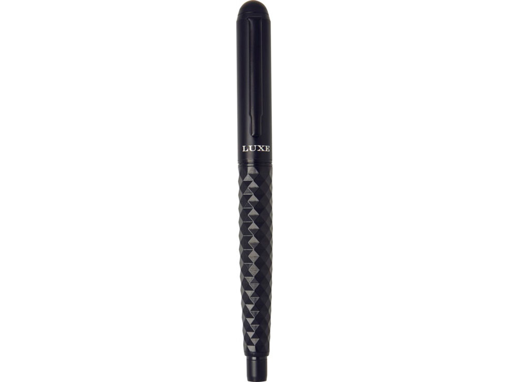 Ручка-роллер с эксклюзивным дизайном сочетает в себе шикарный внешний вид и надежность. Корпус эргономичен для использования. Ручка заправлена черными чернилами и упакована в подарочную коробку LUXE. Подарочный набор можно дополнить стилусом или шариковой ручкой с нажимным механизмом. Алюминий.
