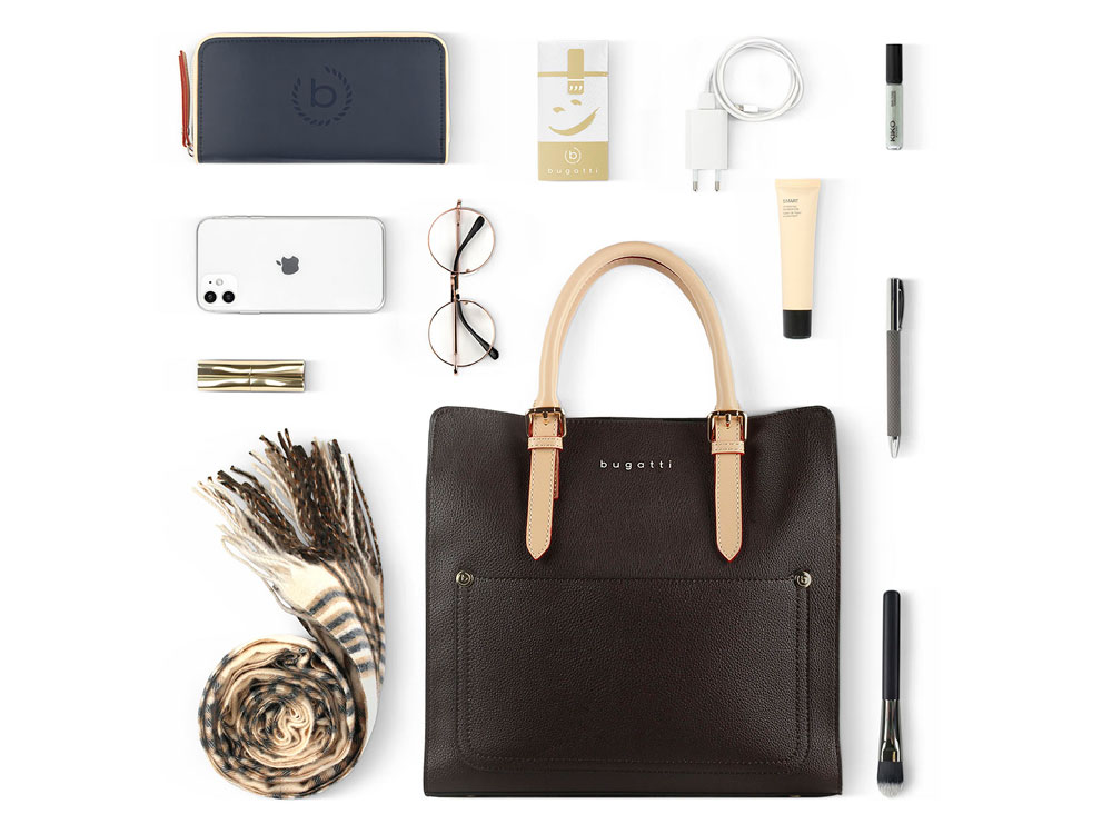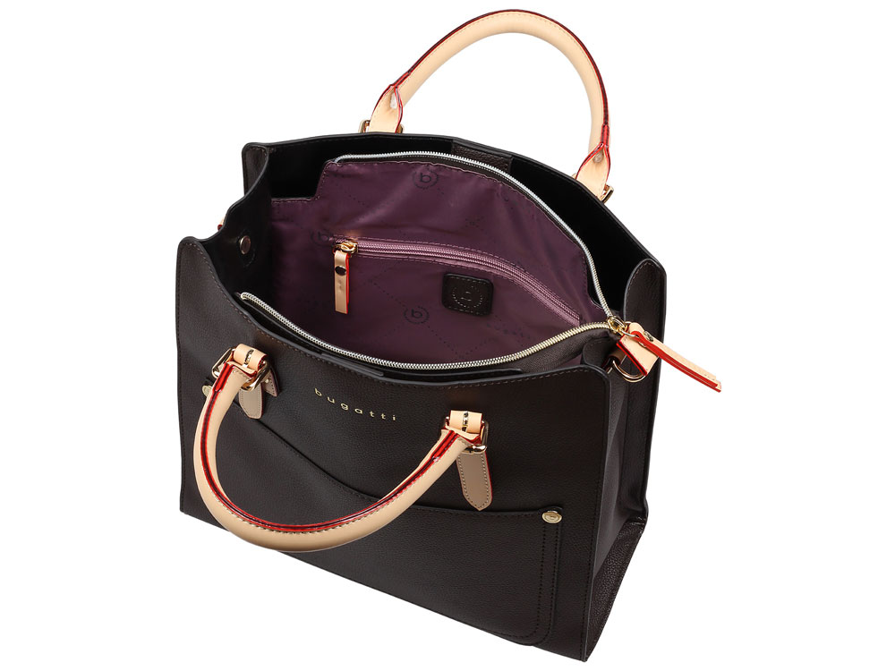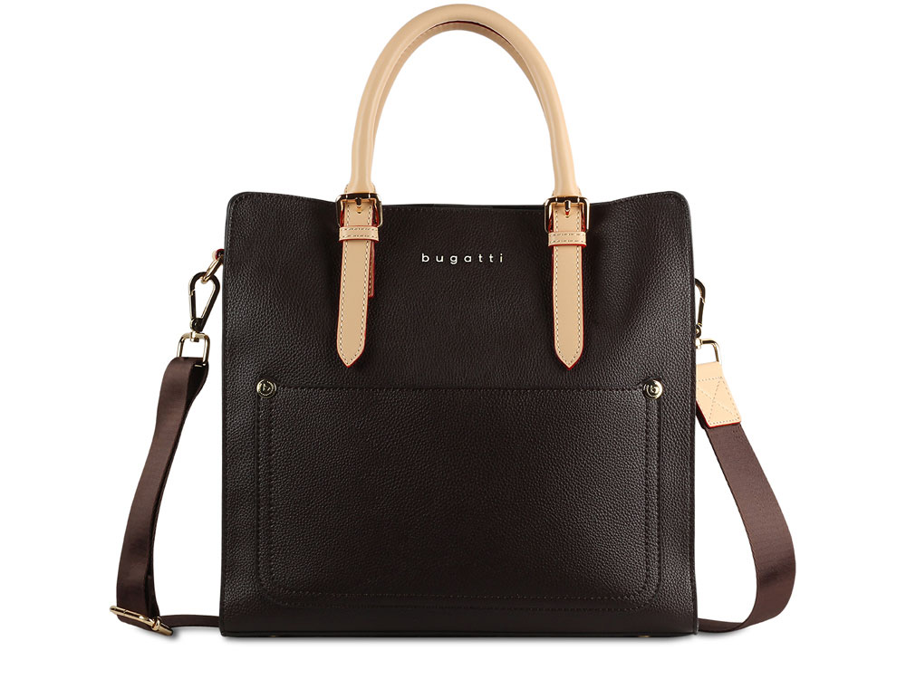 Сумка-портфель женская BUGATTI Ella, тёмно-коричневая, полиуретан, 30х11,5х28 см