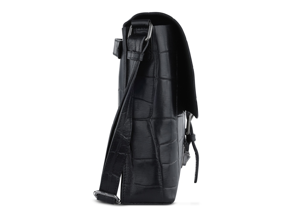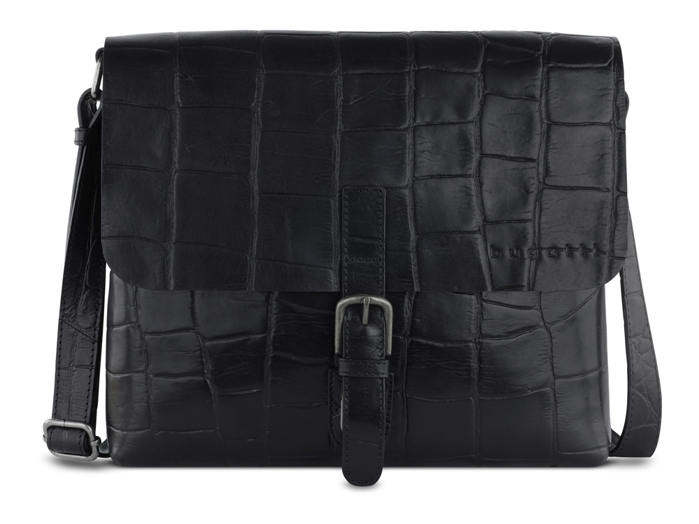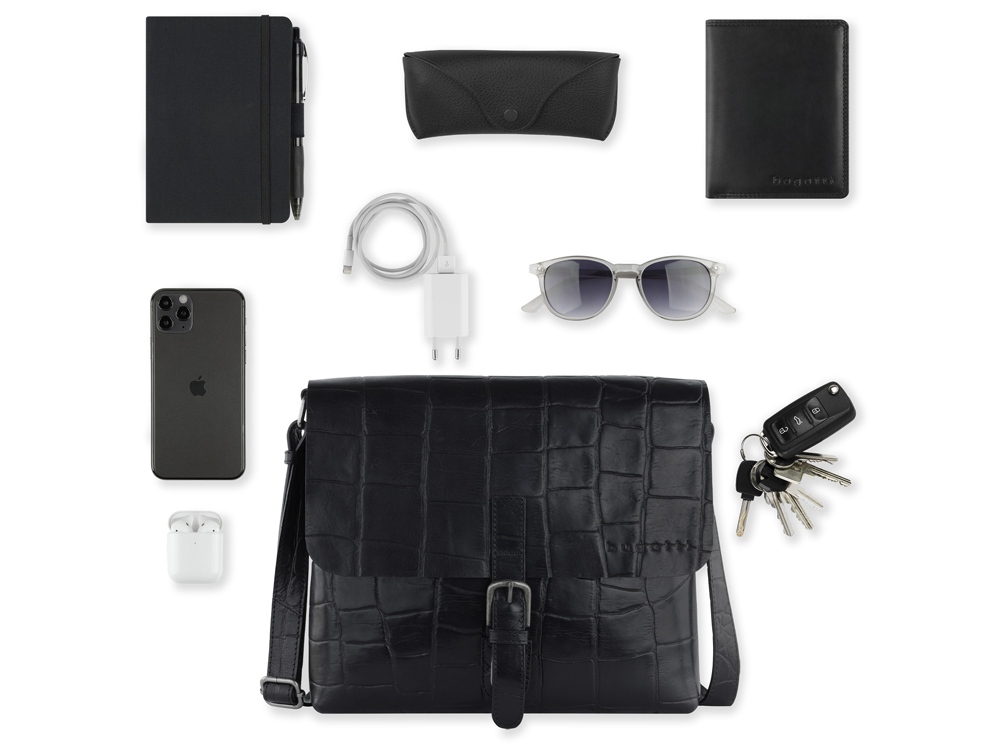 Сумка-мессенджер мужская BUGATTI Nevio, чёрная, воловья кожа/хлопок, 30,5х7х25 см, 5 л