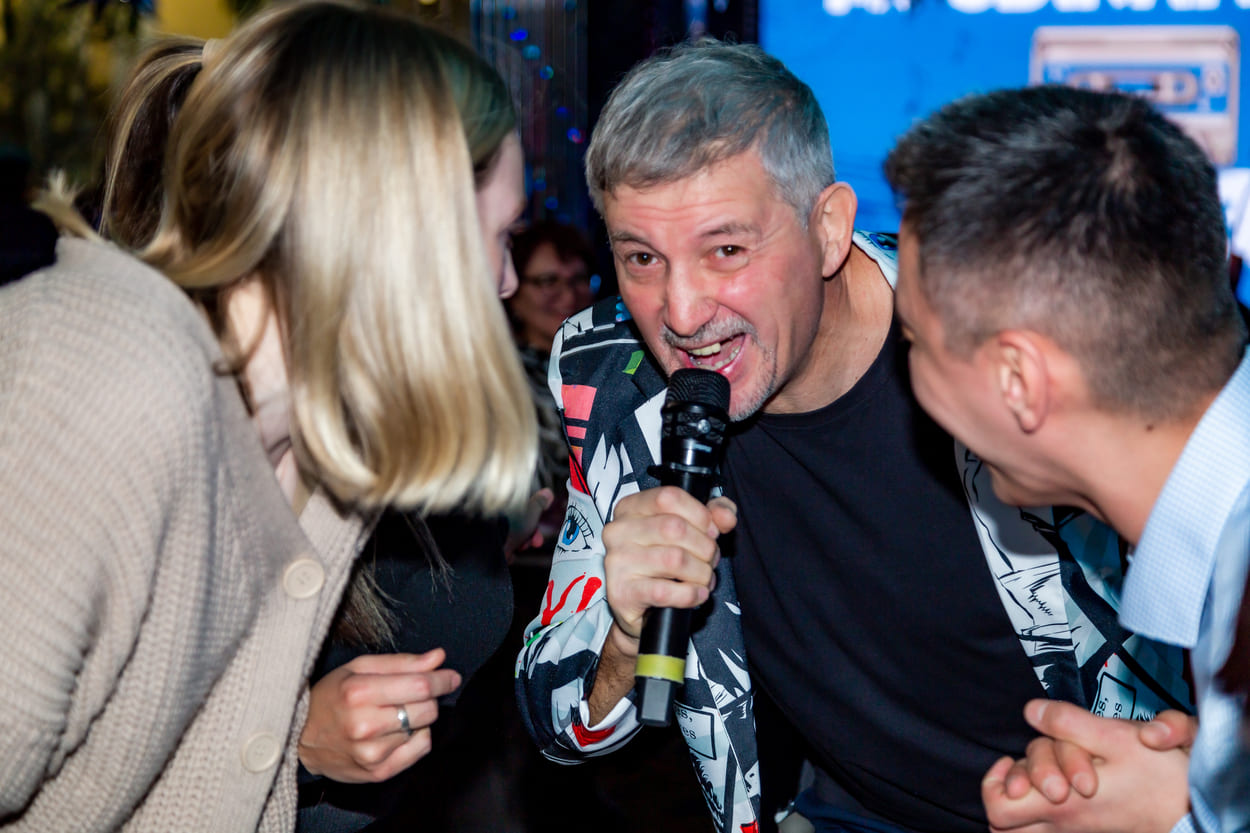 В этот раз была песенная вечеринка - «Караоке 2.0». Мы пели песни, играли в квиз и музыкальное лото, танцевали (о, как все отжигали!) и соревновались в караоке-баттле. Победителями стала блистательная команда «Восьмая нота» - из компании «TeamSoft». Наградили их призами в тему вечеринки – беспроводными наушниками.